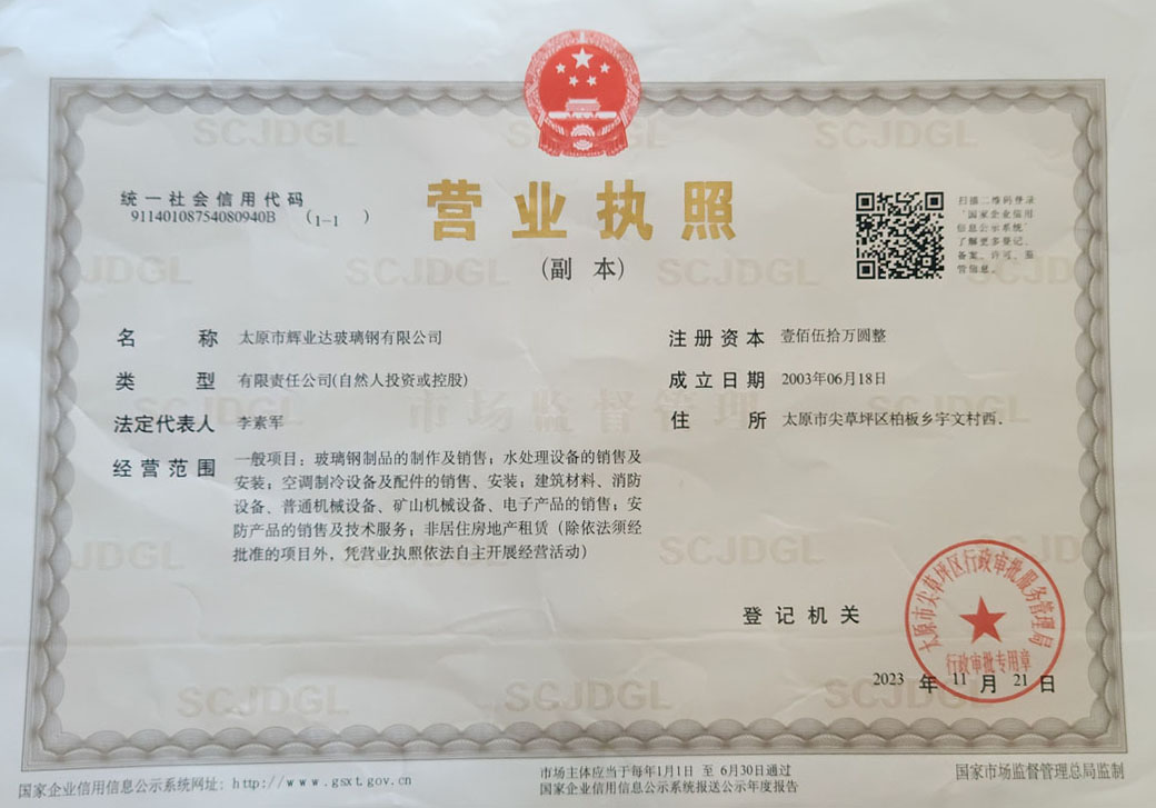 太原市輝業(yè)達玻璃鋼有限公司是一家集玻璃鋼科研、生產(chǎn)、銷售與技術服務為一體的多元化公司。同時備有一支高素質的員工隊伍,團結而智慧的管理層,科學的管理方法,雄厚的技術實力為企業(yè)的發(fā)展奠定了基礎,這也是給用戶提供優(yōu)秀的施工質量,優(yōu)質的產(chǎn)品和服務的有力保證。
