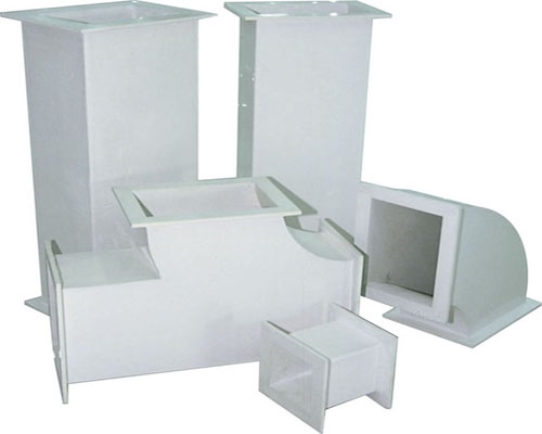 該產(chǎn)品的韌性與耐水性均優(yōu)于其它同類產(chǎn)品。目前市面上的不燃型無機(jī)玻璃鋼通風(fēng)管道存在的突出缺點(diǎn)是脆性大,用手按壓產(chǎn)品的大面即聽到嗄嗄響聲,這表示已在產(chǎn)品的內(nèi)外兩表面產(chǎn)生大量裂紋。若對(duì)產(chǎn)品進(jìn)行敲擊可聽到清脆聲也證明產(chǎn)品脆性大。這樣在產(chǎn)品搬運(yùn)過程中及一些不可預(yù)料的情況下難免受沖擊和擠壓,容易在內(nèi)外表面產(chǎn)生大量發(fā)絲裂紋,致使水份滲透到這些裂紋中去,從而降低了風(fēng)管的使用壽命。為了解除上述弊病,我廠在產(chǎn)品生產(chǎn)中添加了增韌劑和增強(qiáng)劑,顯著地提高了產(chǎn)品的韌性,解除了因產(chǎn)品脆性大而影響使用壽命的不足。我們?cè)诳偨Y(jié)多年研究和生產(chǎn)菱鎂制品經(jīng)驗(yàn)的基礎(chǔ)上,為增強(qiáng)產(chǎn)品的耐水性,在產(chǎn)品中添加了專利產(chǎn)品抗水劑,這樣就可以保證產(chǎn)品長(zhǎng)年使用。我們的產(chǎn)品經(jīng)浸水半年的軟化系數(shù)仍大于1,具有更好的耐水性。
