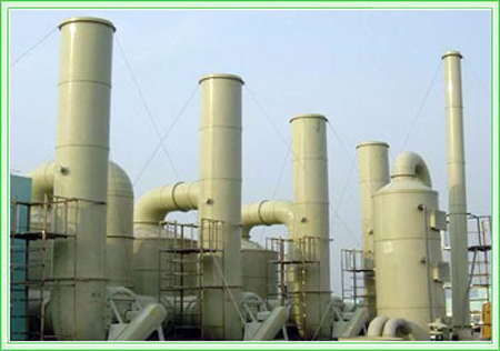玻璃鋼洗滌塔是硫酸生產(chǎn)線(xiàn)的主要設(shè)備,該塔的主要作用是:由塔底進(jìn)塔的帶有礦塵、砷、硒、氟、二氧化硫等雜質(zhì)和二氧化碳?xì)怏w,經(jīng)填料層,由塔頂排出。而稀硫酸通過(guò)塔頂?shù)膰娮靽娏,使之填料層中氣液充分接觸,除去雜質(zhì),達(dá)到凈化氣體的作用。