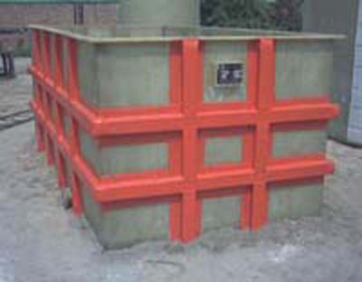 電解槽是冶煉、化工等行業(yè)普遍應(yīng)用的防腐設(shè)備,它適用于銅、鋅等有色金屬濕法冶煉。由于它具有防腐抗?jié)B性能、整體性好抗沖擊能力強(qiáng)、重量輕、內(nèi)表硬度大、光潔度高、不易存結(jié)垢等特點(diǎn)已在有色行業(yè)廣泛應(yīng)用,現(xiàn)已成為常見的濕法冶煉的電解設(shè)備。本公司生產(chǎn)的電解槽為玻璃鋼制品;陔娊獾墓に囂匦裕扇×藦(fù)合結(jié)構(gòu),即槽主體為強(qiáng)度高的玻璃鋼結(jié)構(gòu)層,槽外表包有多向的箱形增強(qiáng)筋,以承受電解液及電極板的荷載。槽內(nèi)表為硬度大、光潔度高的防腐層和致密度很高的防滲層,以增強(qiáng)耐腐蝕、防滲漏和抗沖擊的性能。玻璃鋼電解槽內(nèi)表光潔不易結(jié)垢,體輕靈活便于安裝更換,是一種理想的電解設(shè)備。